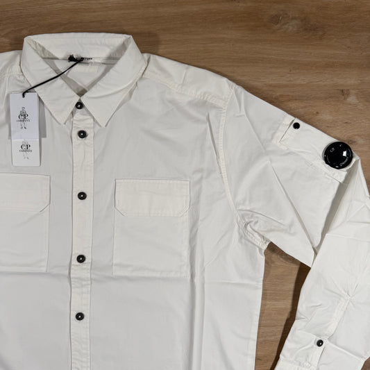 C.P. Company Organic Gabardine Lens Button Shirt in White