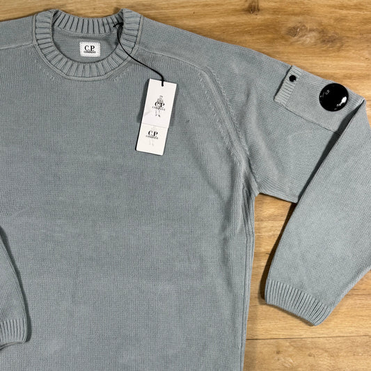 C.P. Company Cotton Chenille Crewneck Lens Sweater in Silver Blue