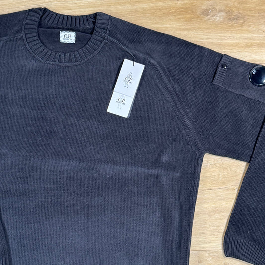 C.P. Company Cotton Chenille Crewneck Lens Sweater in Midnight Navy