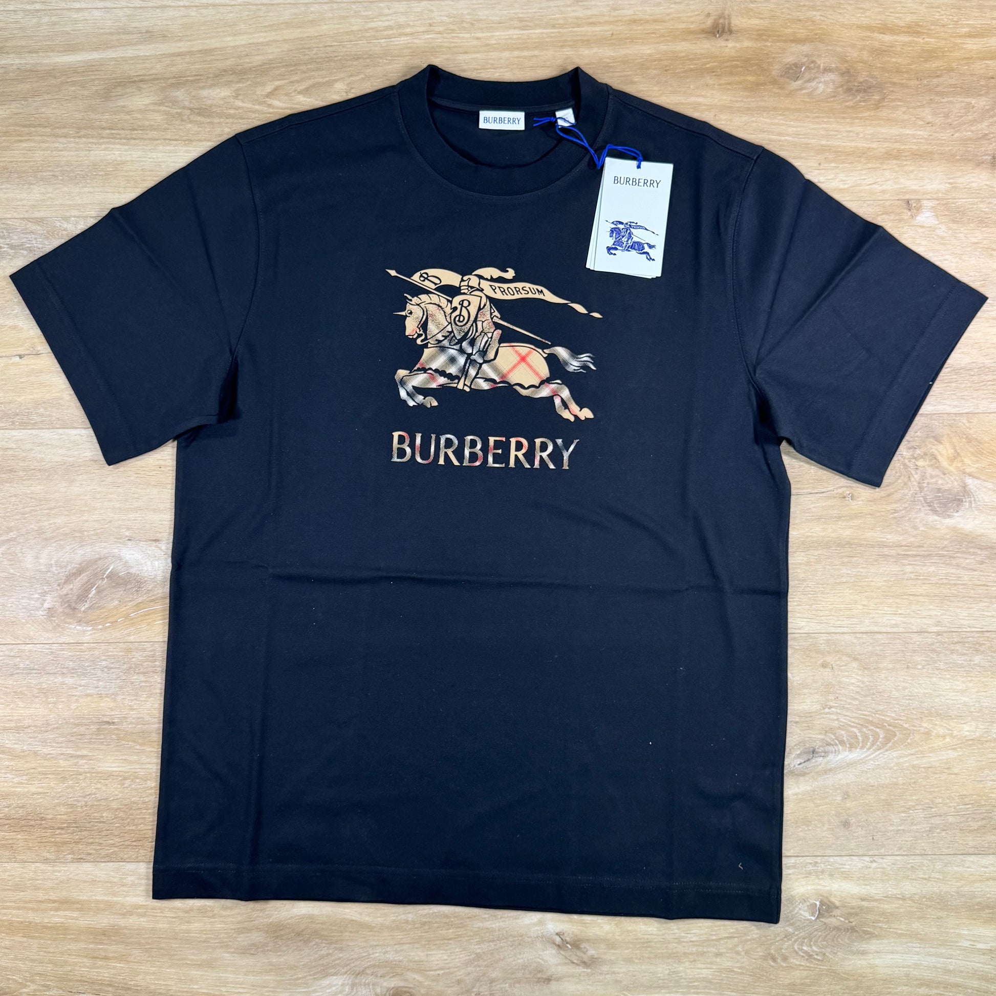 Burberry t-shirt crafted from lightweight cotton jersey and cut to a slim fit for a sharp, contemporary silhouette. The crew-neck design is printed at the chest with Burberry lettering and the Equestrian Knight Design, filled with an ombré Burberry Check for a distinctive finish. Completed with a rib-knit neckline for comfort and structure.