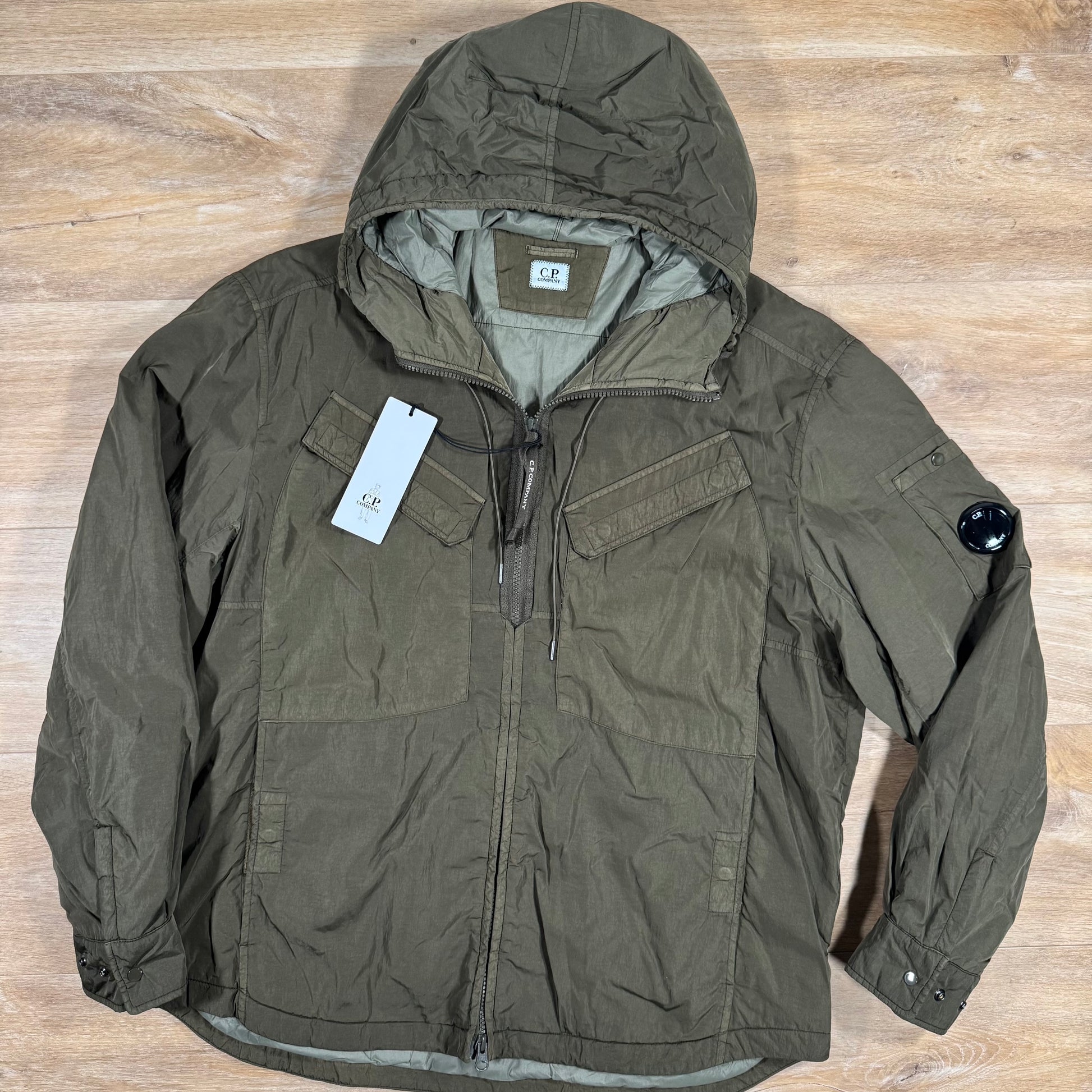 C.P. Company Chrome-R Hooded Zipped Lens Overshirt in Ivy Green