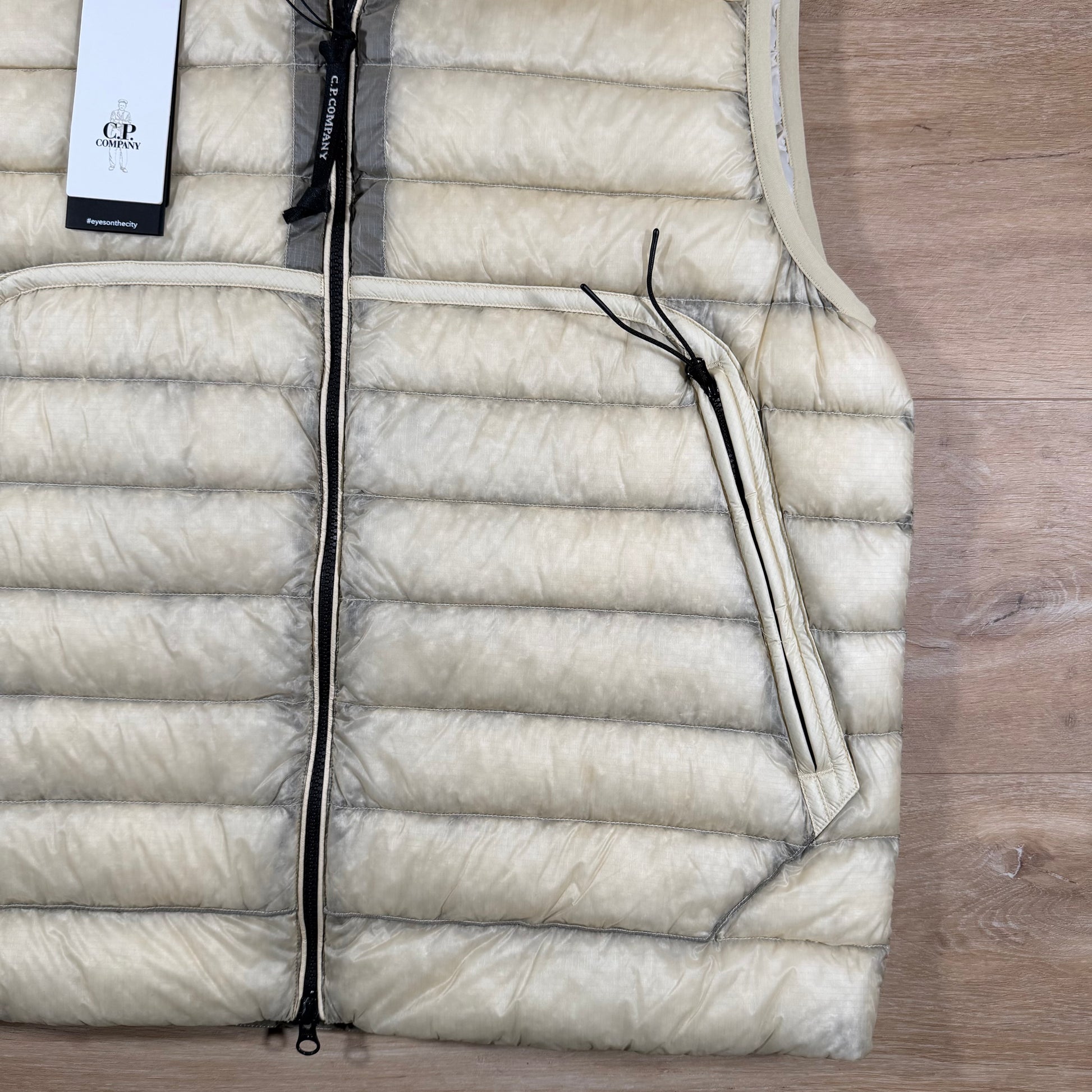This Goggle down gilet is crafted from D.D. Shell, a lightweight and semi-transparent 7-denier micro-ripstop nylon that highlights the garment's construction. Insulated using a Direct Down Injection process for superior warmth, it features C.P. Company’s signature Goggle hood, a two-way full zip fastening, and side zip pockets. An adjustable drawstring hem completes the design, offering a regular fit that balances functionality with distinctive style.