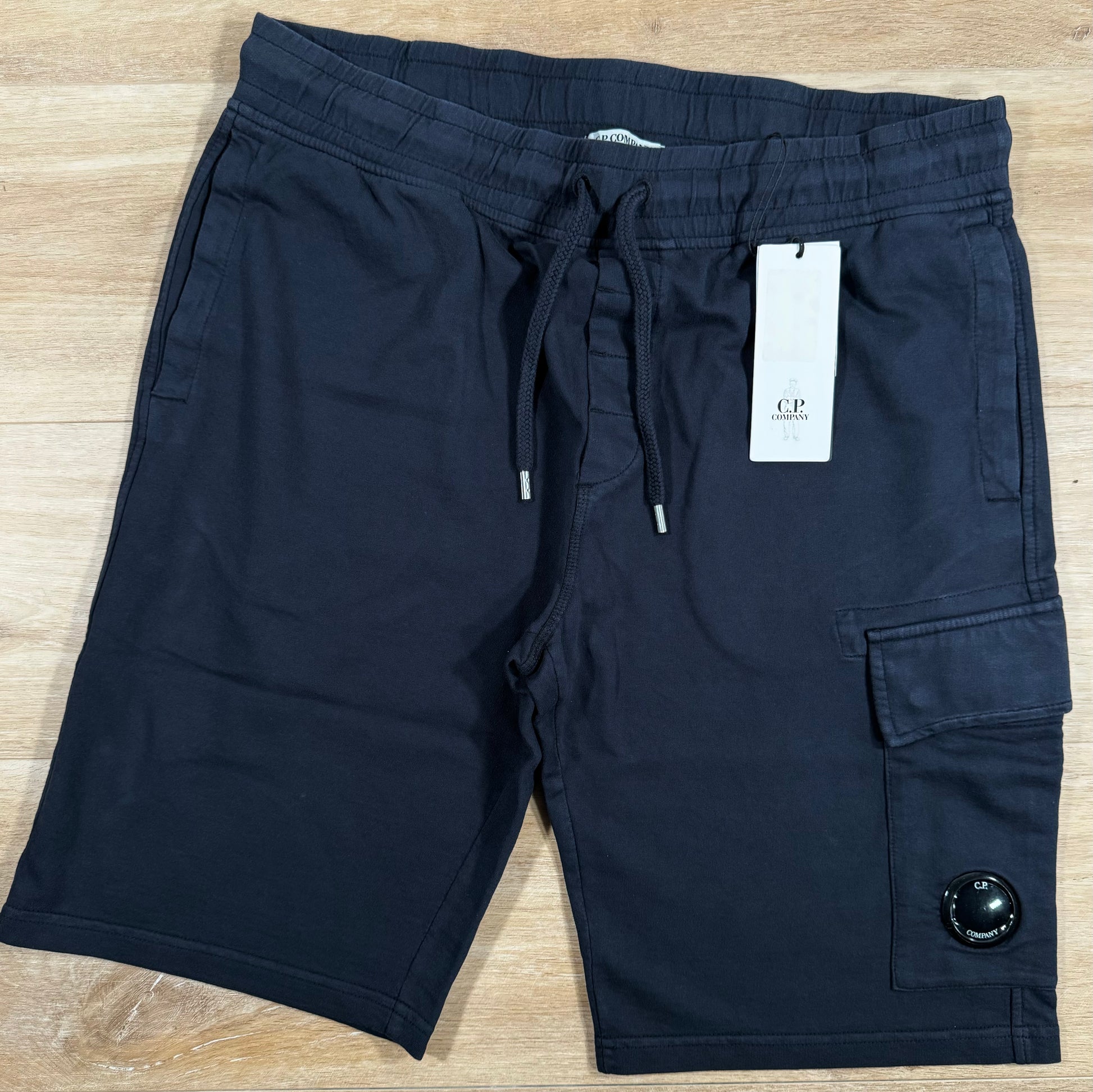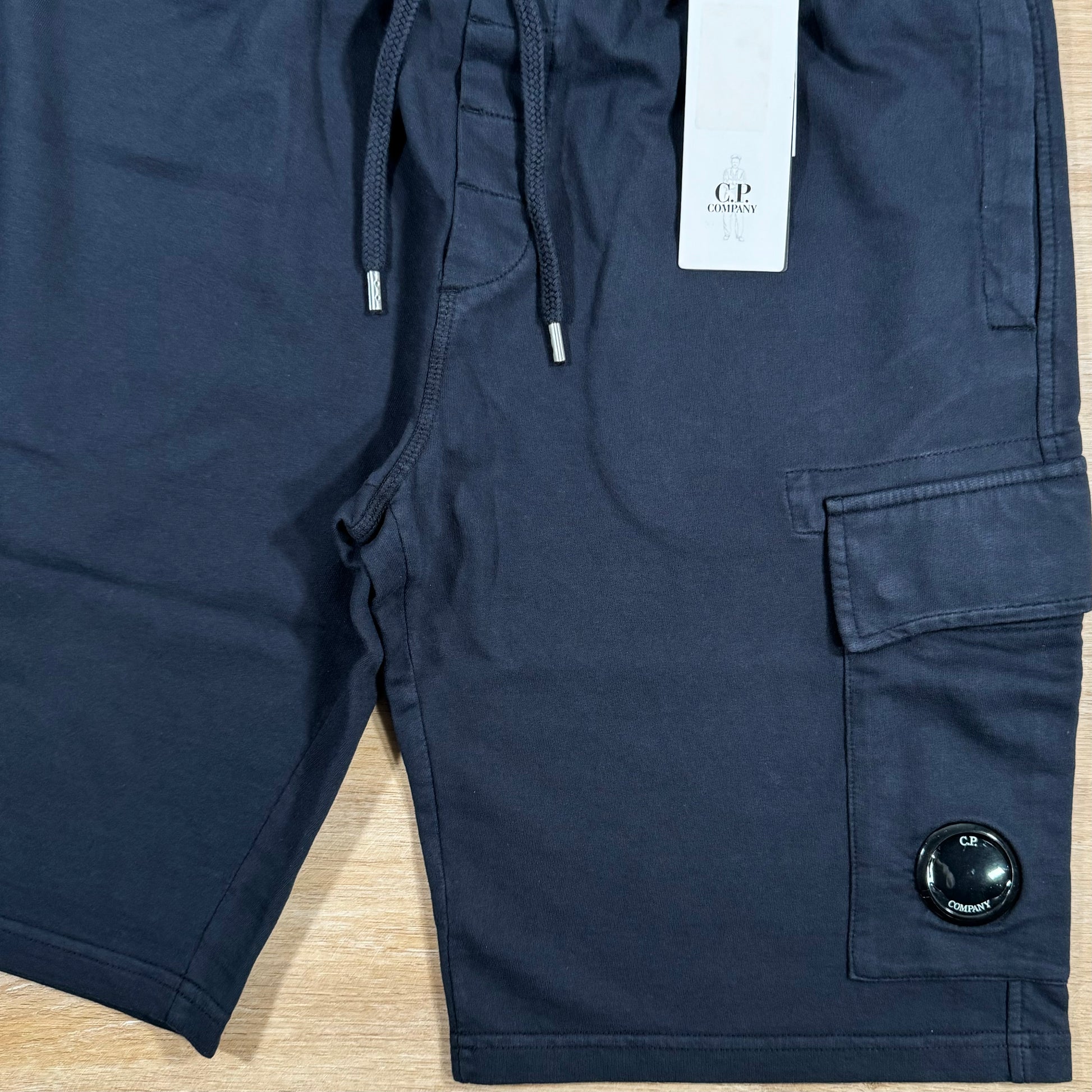 C.P. Company Light Fleece Cargo Lens Shorts in Navy