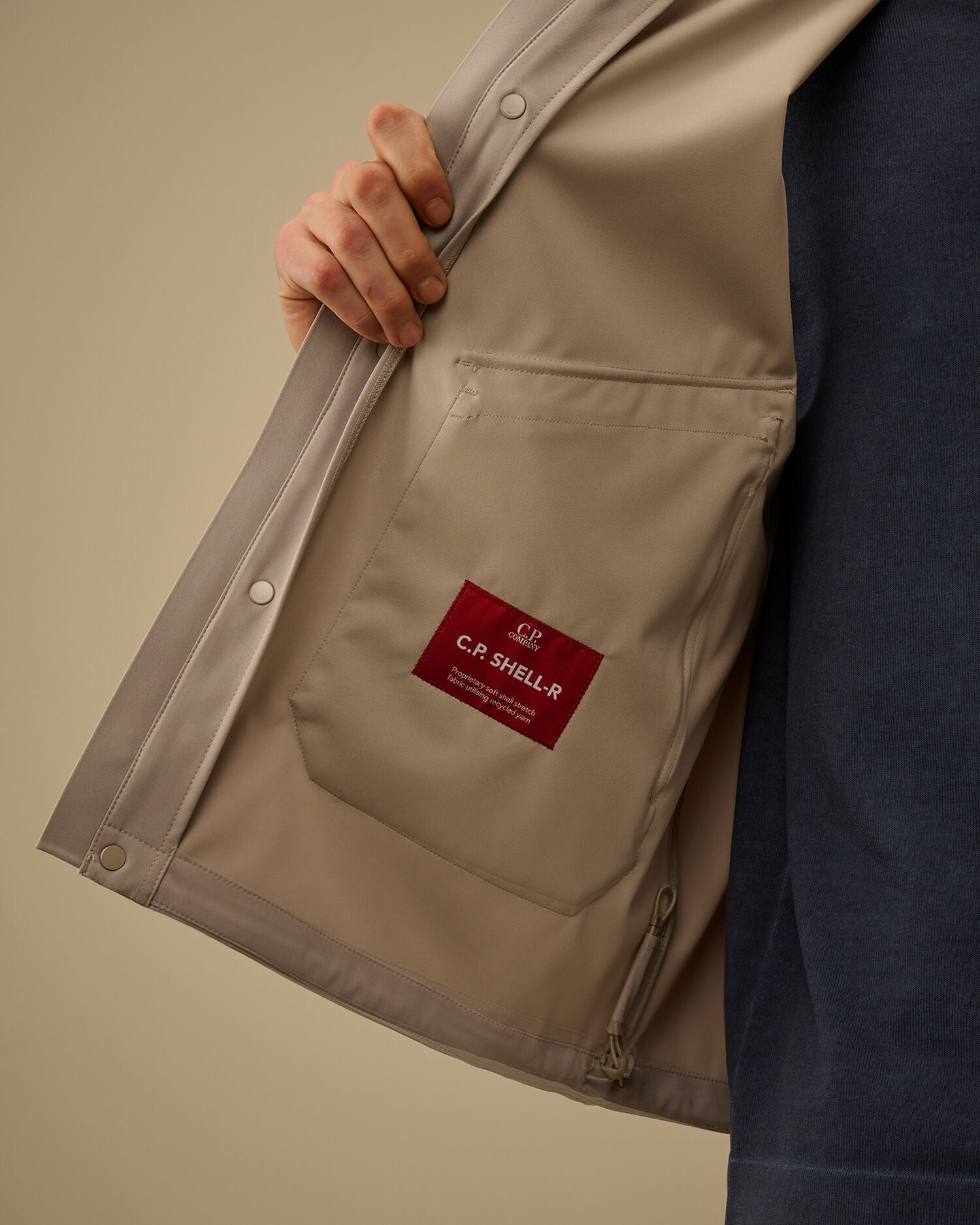 C.P. Company Goggle gilet crafted from C.P. Shell-R, a three-layer recycled polyester softshell with mechanical stretch, certified by the Global Recycled Standard (GRS). This technical multifilament fabric combines comfort and protection, offering windproof performance and water resistance up to 5000mm, finished with an anti-drop treatment. Designed with an adjustable Goggle hood, a concealed two-way zip fastening covered by a snap-button placket, and front flap pockets with both zip and snap closures. Completed with an adjustable drawstring hem for a custom fit. Regular fit.