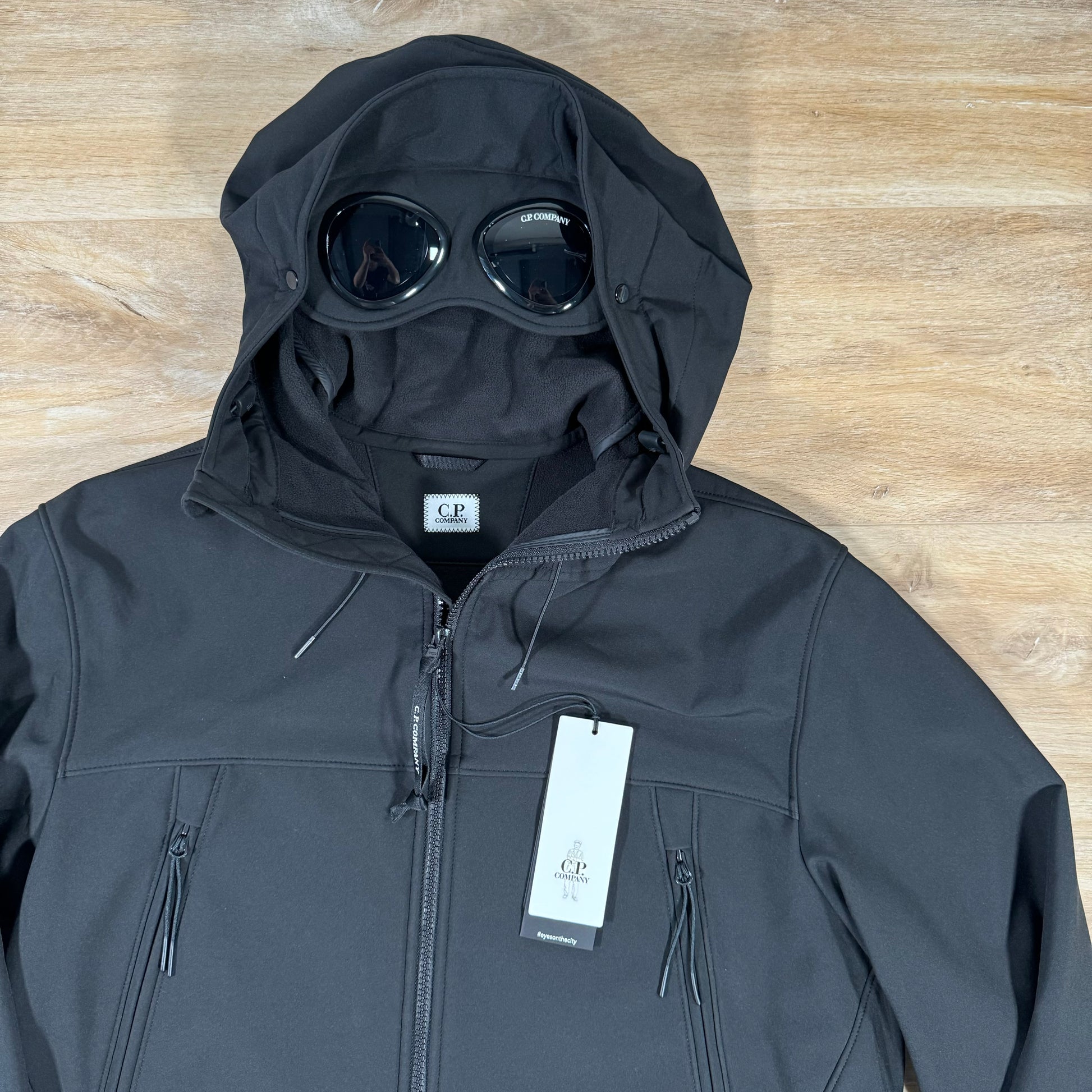 This Goggle jacket is crafted in C.P. Shell-R, a recycled multifilament 3-layer softshell stretch made from GRS-certified recycled polyester yarn. Bonded for a 5000mm water column, it offers windproof protection with an anti-drop finish. Designed with the iconic Goggle hood, a two-way zip fastening, side zip pockets, ribbed cuffs, and an adjustable drawstring hem. Regular fit.