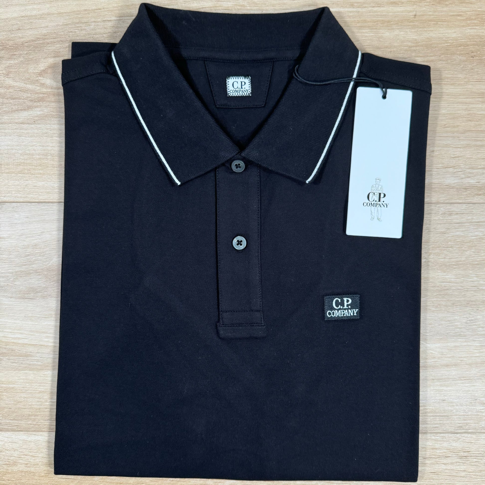 C.P. Company Stretch Piquet Striped Collar Polo Shirt in Black