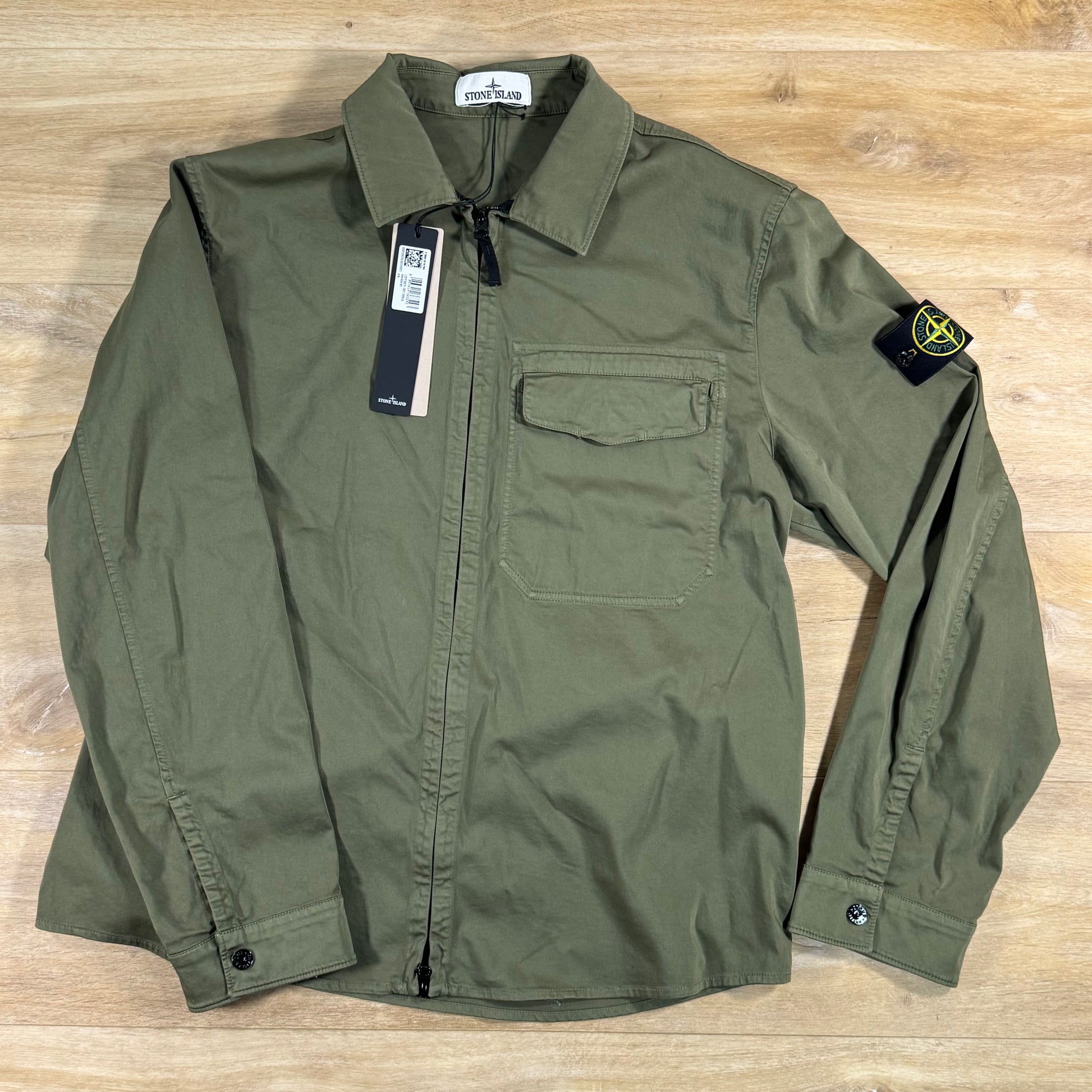Overshirt crafted from stretch organic cotton satin, garment dyed to enhance colour depth and give a soft, refined finish. Designed with a chest patch pocket featuring a flap and concealed button fastening, plus a back yoke with internal reinforcement for added structure. Finished with the iconic Stone Island badge on the left sleeve, snap-adjustable cuffs and a concealed two-way zip fastening. A rounded drop-back hem completes the silhouette, cut to a versatile regular fit.